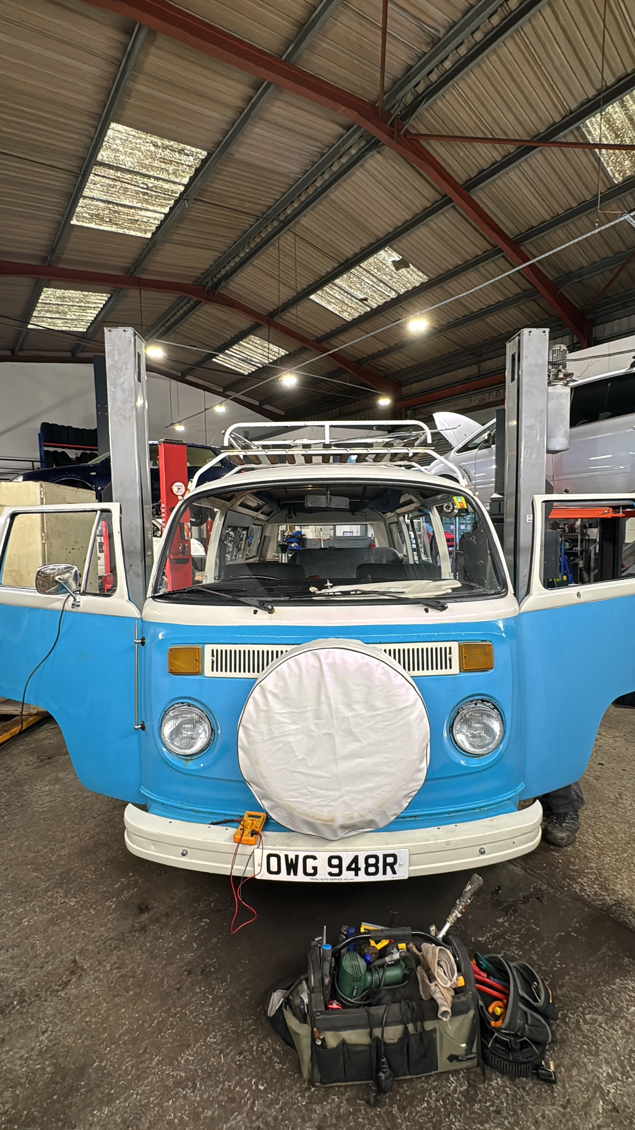 I have spent the last three weeks at AT Services in Dover working on the van. I had to replace the window casings (it leaked), put in sound deadening, insulation, lining and panelling. This was all recommended to me (and largely done by) my old friend Terry who got in touch when he heard I was looking for an old van and said he could help. Terry employed me as a teenager on a building site in Wales and is an enthusiast for VWs. We looked at this one together before buying it at auction. I'll be doing a mural for the owners of AT Services for the use of their garage and invaluable use of their tools, knowledge, advice and biscuits.